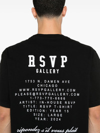 x RSVP Gallery cotton T-shirt Highlights - Black - Crew neck - Short sleeves - Raised logo detail Made in United States Composition Cotton 100% SIZE & FIT Model measurements Height 6 ft 1 in(1.85 m) Bust/Chest 35.82 in(91 cm) Hips 37.79 in(96 cm) Waist 29.13 in(74 cm) FittingInformation Designed for a relaxed fit, this piece allows for comfort and movement when worn Made from a midweight non-stretch fabric, this piece offers minimal elasticity when worn