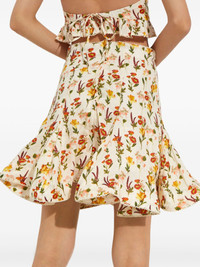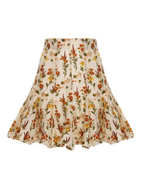 Cerezo Clementina mini skirt Part of the nature-inspired Simbolo collection, the repetitive print on this Cerezo Clementina skirt is a floral riff on sacred geometry. The mini design is cut from lightweight linen with a high, fitted waist that flares at the hips to a floaty ruffled hem. Picot trims enhance its charming allure. Highlights - Beige and multicolour - Floral print - Rear zip fastening Imported Composition Linen/Flax 100% SIZE & FIT Measurement HIPS 38.58 in(98 cm) LENGTH 18.5 in(47 cm) WAIST 29.13 in(74 cm) Washing instructions Read Manufacturer Guidelines