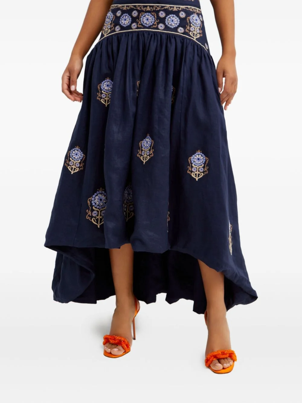 Curua Mosaico embroidered asymmetric midi skirt Highlights - Blue - Mosaic embroidery - Rear zip fastening - Asymmetric hem Imported Composition Linen/Flax 100%