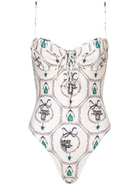 Ebano Alhaja swimsuit Highlights - White/multicolour - Recycled polyester blend - All-over graphic print - Uv protection - Sweetheart neck - Front tie fastening - Spaghetti straps - High cut - Be mindful to try on swimwear over your own garments. Imported Composition Recycled Polyester 81%, Elastane 19%