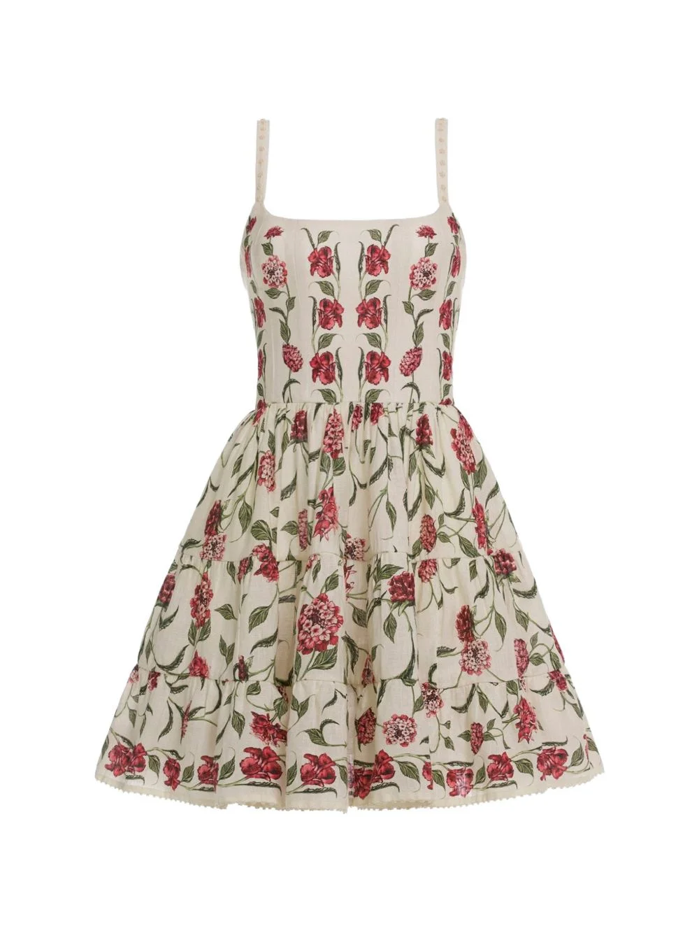 floral-detail mini dress Highlights - Beige and multicolour - Floral print - Straps - Flared skirt - Knee length Imported Composition Linen/Flax 100% Washing instructions Read Manufacturer Guidelines