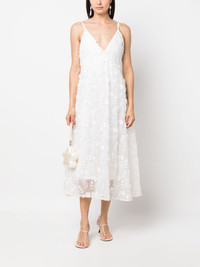 floral-embroidered midi dress Highlights - White - Floral embroidery - V-neck - Spaghetti straps - Sleeveless - V-back - Below-knee length Imported Composition Outer: Polyester 100% Lining: Polyamide 78%, Elastane 22% SIZE & FIT Model measurements Height 5 ft 11 in(1.8 m) Bust/Chest 33.07 in(84 cm) Hips 37.4 in(95 cm) Waist 25.19 in(64 cm) Measurement HIPS 37 in(94 cm) LENGTH 48.81 in(124 cm) WAIST 30.7 in(78 cm) BUST 29.92 in(76 cm) Washing instructions Dry Clean Only