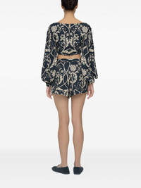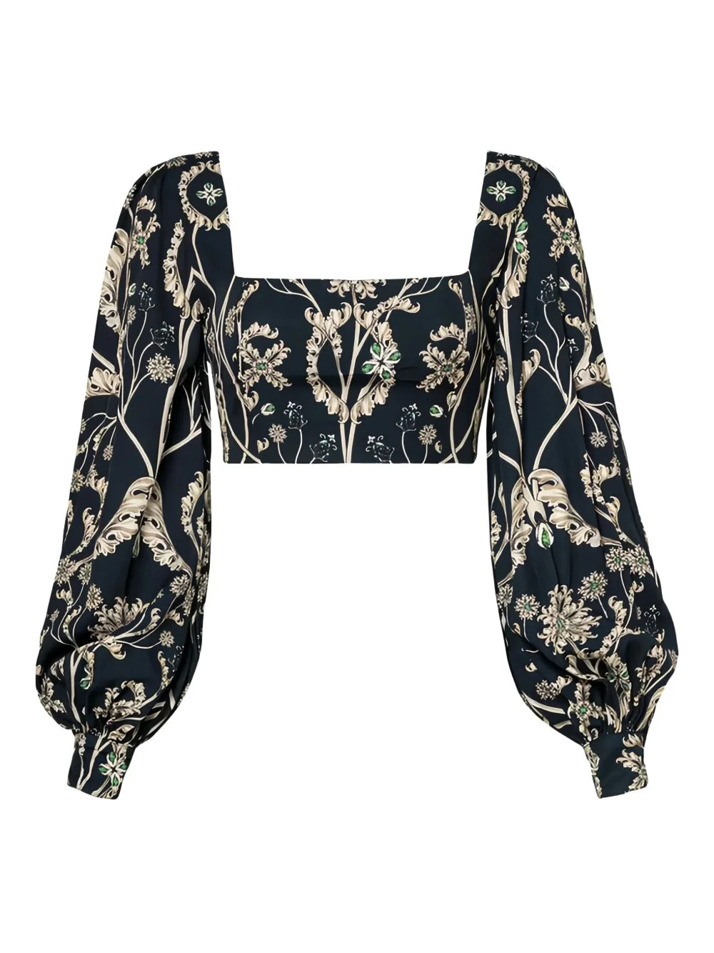 Pera Gema balloon-sleeve top Highlights - Black/multicolour - Floral print - Square neck - Balloon sleeves - Rear zip fastening - Cropped hem Imported Composition Recycled Viscose 68%, Viscose 32% Washing instructions Read Manufacturer Guidelines