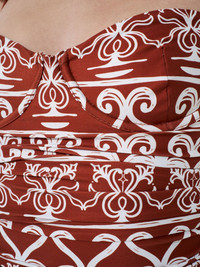 Rabano patterned swimsuit Highlights - Brown - Geometric pattern - Tie straps - Ruched waist - Underwired cups - Be mindful to try on swimwear over your own garments. Imported Composition Fabric 100% Washing instructions Read Manufacturer Guidelines