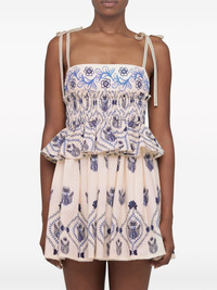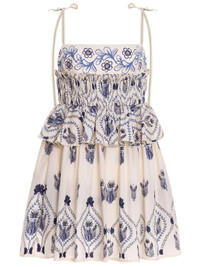 Salvador Jarron cotton mini dress Agua by Agua Bendita showcases its sophisticated and timeless style with the Salvador Jarron dress. Boasting an eye-catching blueprint, it has a fluid cut finished with little bows that tie at the shoulders. Highlights - White - Cotton - All-over floral print - Ruffled detailing - Adjustable shoulder straps - Square neck - Rear zip fastening - Straight hem Imported Composition Cotton 100% Washing instructions Dry Clean Only