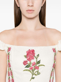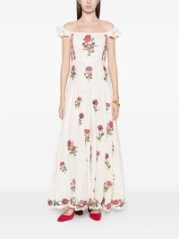 Siembra Quebrada floral-pattern off-shoulder dress Highlights - Neutrals - Embroidered flowers - Off-shoulder - Scalloped hem - Ruffled straps - This piece comes complete with a protective dust bag. Imported Composition Outer: Linen/Flax 100% Lining: Cotton 100% SIZE & FIT Model measurements Height 5 ft 9 in(1.76 m) Bust/Chest 33.85 in(86 cm) Hips 35.43 in(90 cm) Waist 25.59 in(65 cm) Washing instructions Read Manufacturer Guidelines