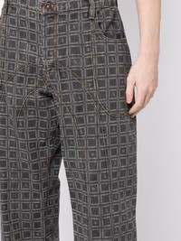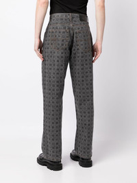 Kalonji straight-leg jeans charcoal grey cotton contrast stitching check pattern monogram pattern logo patch to the rear belt loops front button and zip fastening classic five pockets straight leg Made in Italy Composition Cotton 100% SIZE & FIT Model measurements Height 6 ft 2 in(1.87 m) Bust/Chest 36.22 in(92 cm) Hips 37.79 in(96 cm) Waist 28.34 in(72 cm) FittingInformation This piece fits true to size. We recommend you get your regular size Designed for a slim fit at the waist and loose over the leg Made with a mid-weight non-stretch fabric Washing instructions Hand Wash