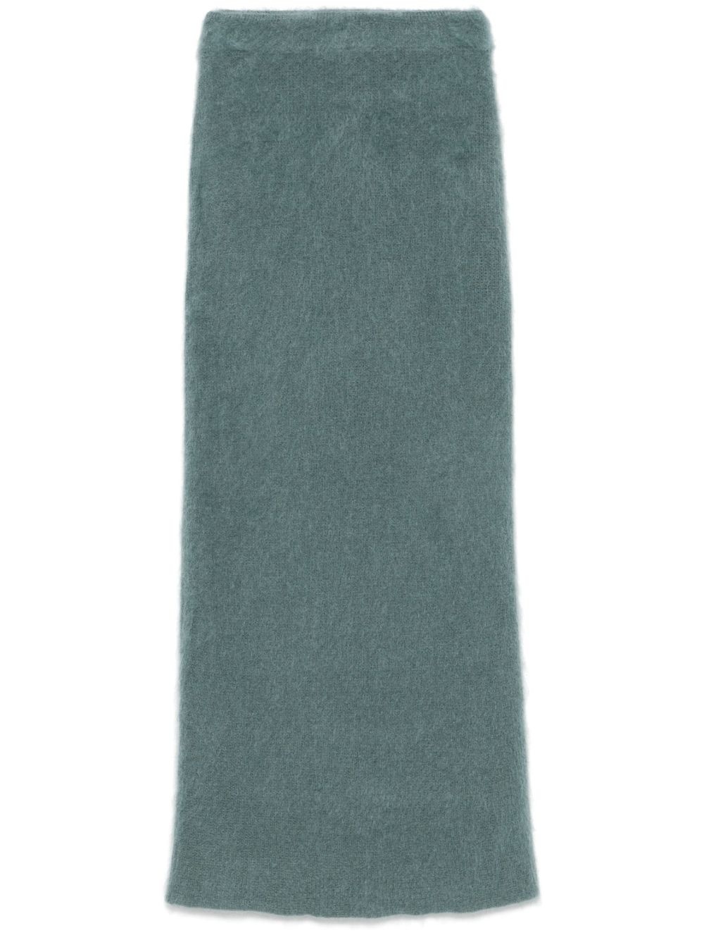 brushed maxi skirt Highlights - Teal blue - Elasticated waistband - Rear slit - Unlined Made in Italy Composition Kid Mohair 44%, Polyamide 34%, Wool 22% SIZE & FIT Model measurements Height 5 ft 10 in(1.78 m) Bust/Chest 33.85 in(86 cm) Hips 36.61 in(93 cm) Waist 26.77 in(68 cm) FittingInformation This maxi-length skirt is intended to be worn just below the waist The elasticated waist allows for a comfortable fit Made with a midweight knit, this piece offers some stretch