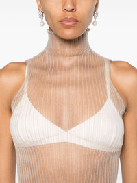 Modern Mist top Highlights - Taupe grey - Mesh design - Semi-sheer construction - Plisse effect - High neck - Sleeveless - Raw-cut hem Made in Italy Composition Nylon 100% SIZE & FIT Model measurements Height 5 ft 10 in(1.78 m) Bust/Chest 33.07 in(84 cm) Hips 36.61 in(93 cm) Waist 24.8 in(63 cm) FittingInformation Designed for a close fit throughout The pleated construction on this piece allows for additional movement and flexibility in the fit This piece fits true to size – take your usual size