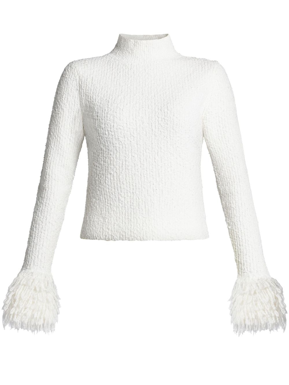 textured-finish top Highlights - White - High neck - Long sleeves - Straight hem Imported Composition Cotton 64%, Nylon 18%, Polyester 14%, Wool 3%, Spandex/Elastane 1%