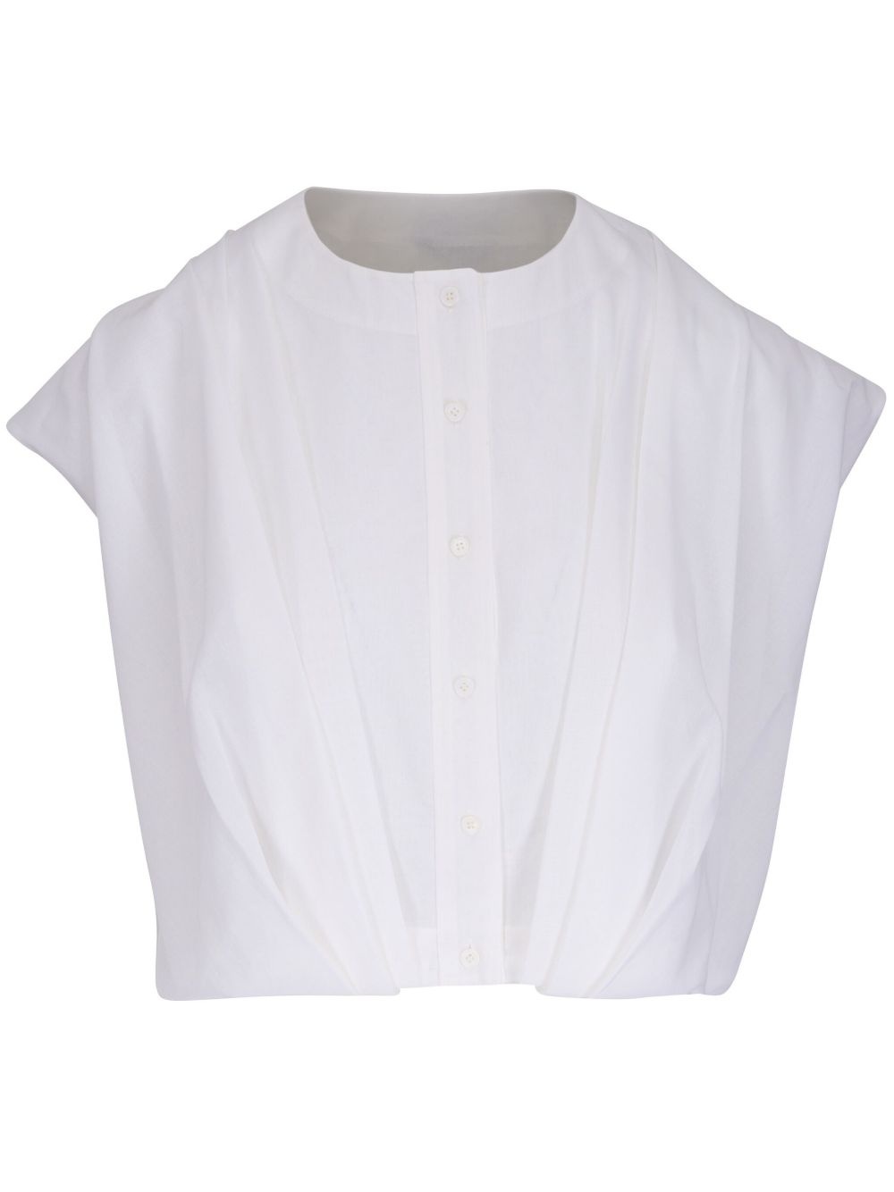 cotton top Highlights - White - Front button fastening - Short sleeves - Curved hem Made in United States Composition Cotton 100% Washing instructions Dry Clean Only