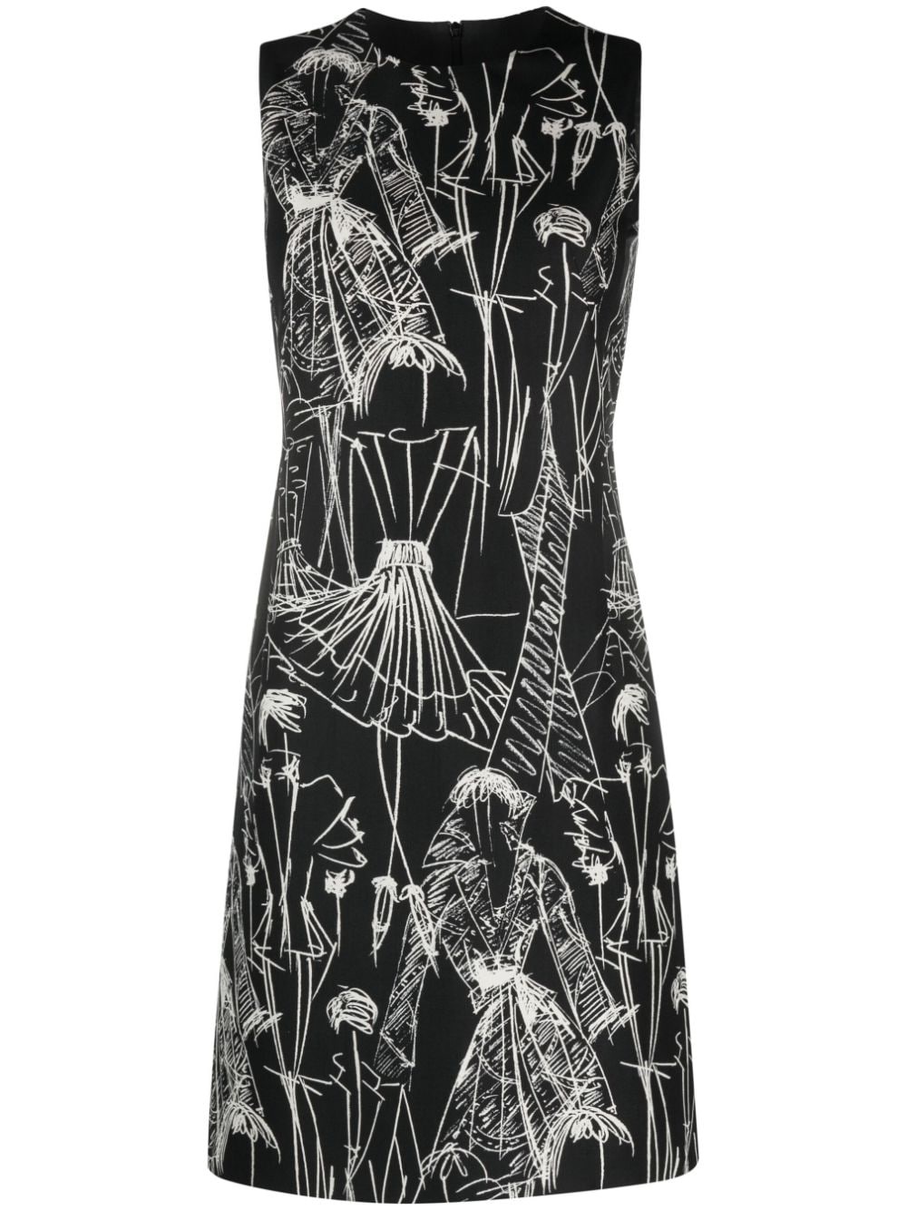Croquis-print sleeveless minidress