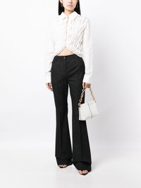 high-rise flared jeans Highlights - Black - Cotton blend - Denim - Pleat detailing - Belt loops - Button fly fastening - High-waisted - Flared - Two rounded pockets to the sides - Two rear patch pockets - Straight hem Imported Composition Body: Cotton 98%, Polyurethane 2% Lining: Viscose 93%, Elastane 7% SIZE & FIT Model measurements Height 5 ft 10 in(1.77 m) Bust/Chest 28.74 in(73 cm) Hips 35.82 in(91 cm) Waist 24.4 in(62 cm) Washing instructions Dry Clean Only