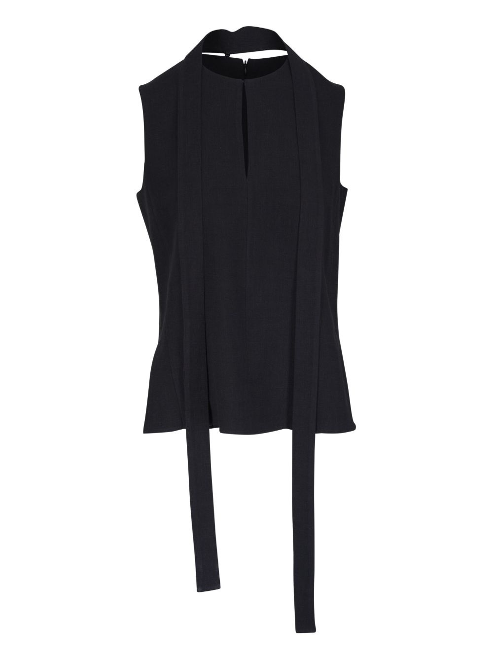 linen-blend top Highlights - Black - Concealed rear zip fastening - Attached scarf - Sleeveless - Side slits Made in United States Composition Linen/Flax 70%, Wool 30% Washing instructions Dry Clean Only