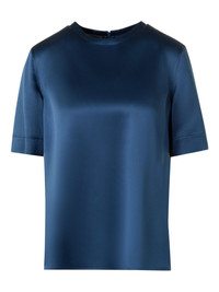 short-sleeve top Highlights - Denim blue - Round neck - Short sleeves - Rear zip fastening - Straight hem - Tonal stitching Imported Composition Silk 100% Washing instructions Read Manufacturer Guidelines