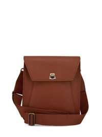 twist-lock leather crossbody bag cognac brown calf leather grained texture twist-lock closure foldover top adjustable detachable shoulder strap main compartment Made in United States Composition Outer: CALFSKIN 100%