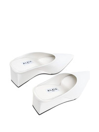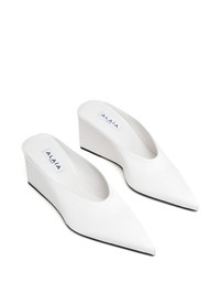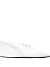 75mm satin-finish mules Highlights - White - Slip-on style - High wedge heel - Branded footbed - Pointed toe Made in Italy Composition Lining: Sheepskin 100% Sole: Rubber 100% Outer: Fabric 100% SIZE & FIT Measurement HEEL 2.95 in(7.5 cm)