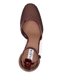 90mm ankle-strap mesh pumps Highlights - Burgundy - Mesh panel - Leather trim - Stiletto heel - Ankle strap - Buckle fastening Made in Italy Composition Sole: Calf Leather 100%, Rubber 100% Outer: Patent Calf Leather 100%, Fabric 100% Lining: Calf Leather 100% SIZE & FIT Measurement HEEL 3.14 in(8 cm)