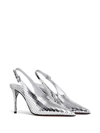 90mm Art Deco pumps Highlights - Silver-tone - Buckle-fastening slingback strap - High stiletto heel - Branded insole Made in Italy Composition Outer: Metallic Leather 100% Lining: Calf Leather 100% Sole: Calf Leather 100% SIZE & FIT Measurement HEEL 3.93 in(10 cm)