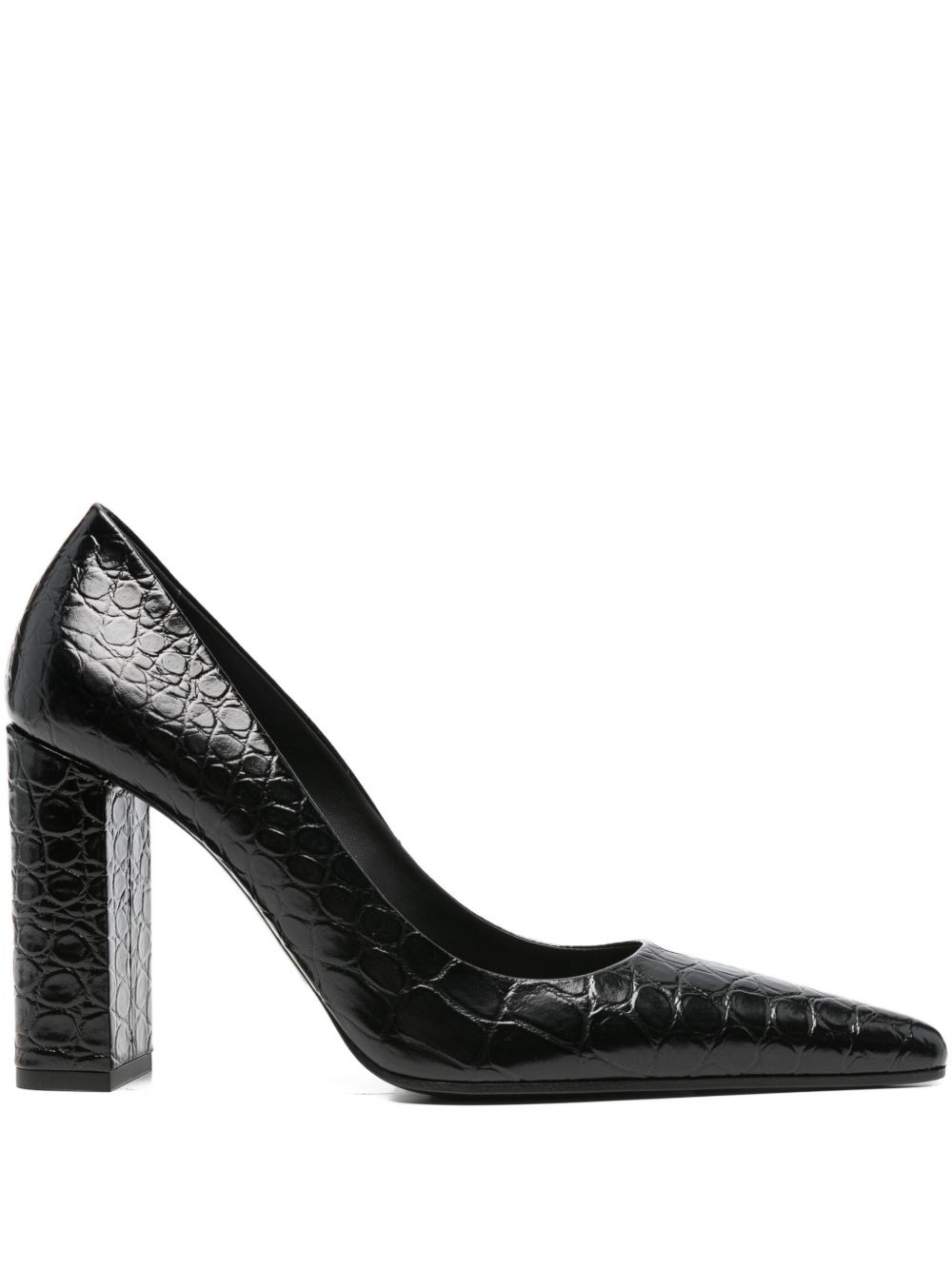 90mm crocodile-embossed pointed pumps Highlights - Black - Crocodile embossed - Pointed toe - Block heel - Leather upper Made in Italy Composition Outer: CALFSKIN 100% Lining: Lambskin 90%, CALFSKIN 5%, Goat Skin 5% Sole: CALFSKIN 80%, Rubber 20% SIZE & FIT Measurement HEEL 3.54 in(9 cm)