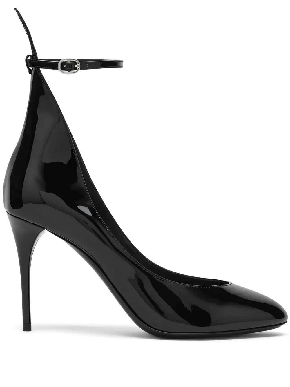 90mm Decolette pumps Highlights - Black - Buckle-fastening ankle strap - Pointed toe - Branded footbed - High stiletto heel Made in Italy Composition Sole: Calf Leather 100% Outer: Lambskin 100% Lining: Calf Leather 100% SIZE & FIT Measurement HEEL 3.54 in(9 cm)