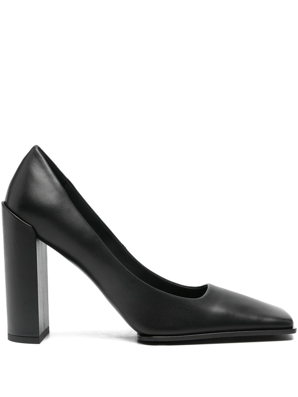 90mm Shiny pumps Highlights - Black - Square toe - Block heel - Heel height: 100mm - Tonal stitching - Smooth texture Imported Composition Sole: Leather 100%, Rubber 100% Outer: Calf Leather 100% Lining: Lambskin 100% SIZE & FIT Measurement HEEL 4.72 in(12 cm)