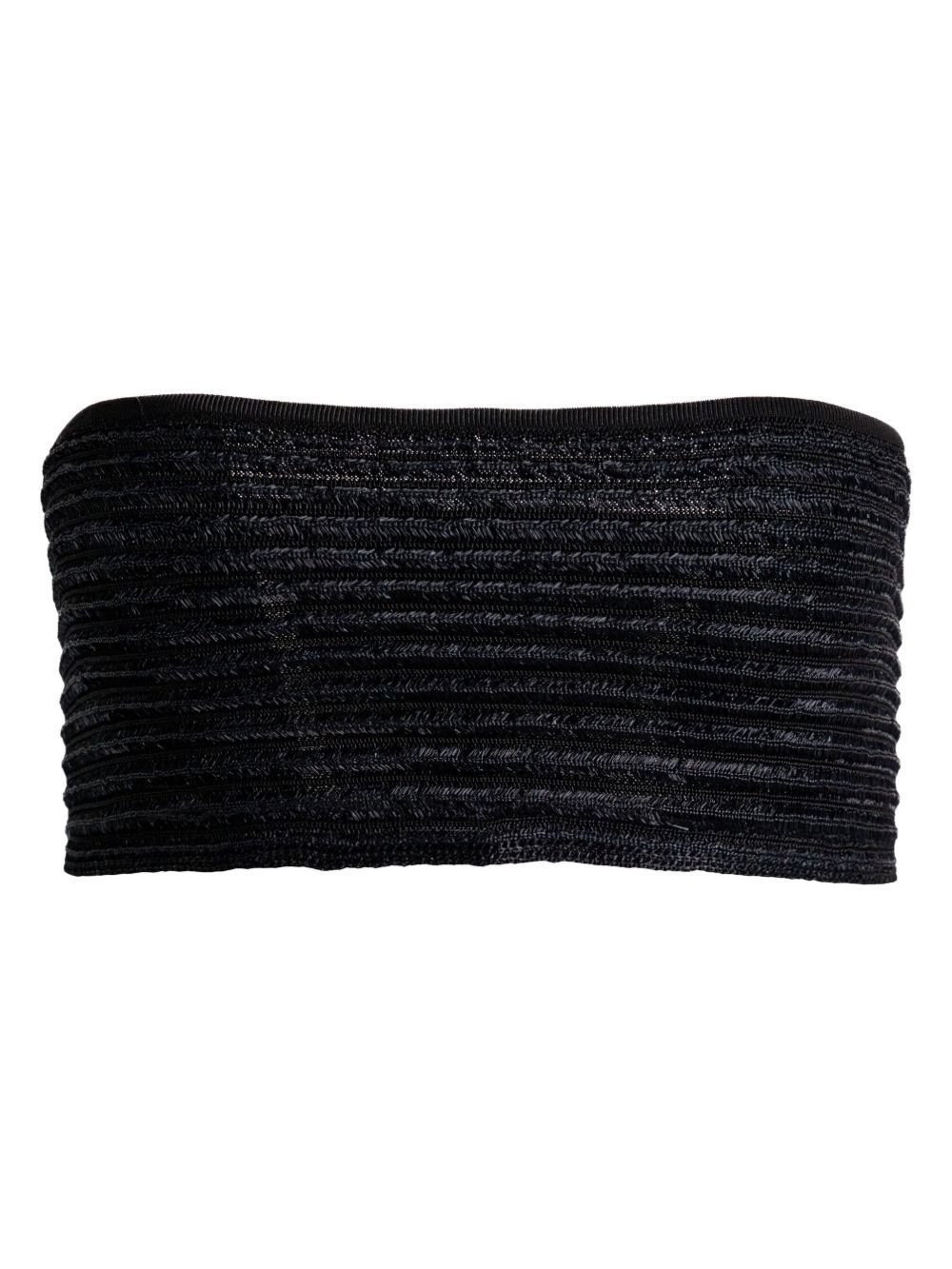 ribbed strapless top Highlights - Black - Ribbed texture - Strapless - Back zip fastening - Straight hemline Made in Italy Composition Viscose 100% Washing instructions Read Manufacturer Guidelines