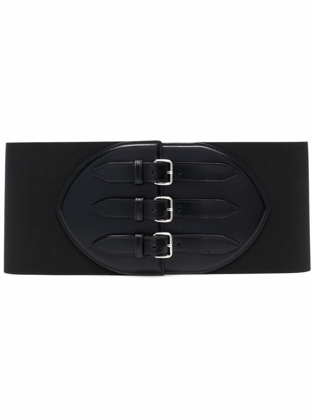 buckle-fastening wrap belt noir-black lambskin-blend silver-tone hardware buckle fastening stretch-design Made in Italy Composition Fabric 100%, Lambskin 100% SIZE & FIT Measurement Minimum Length 29.13 in(74 cm) WIDTH 5.51 in(14 cm)