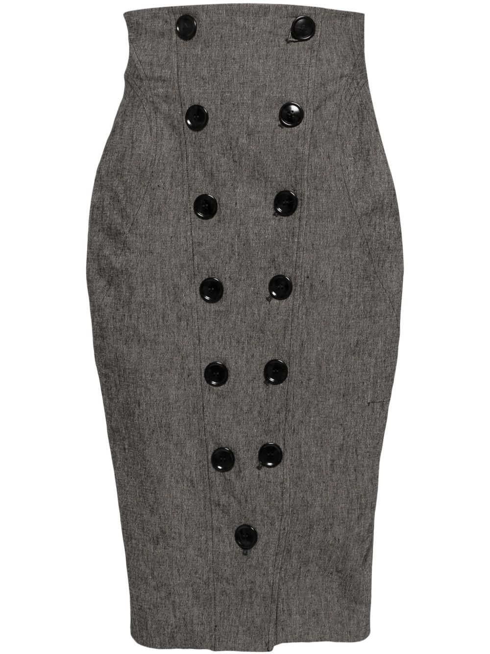 Buttoned Stretch-Wool Midi Pencil Skirt grey
