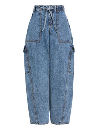 cargo blue jeans Highlights - Blue - Drawstring fastening - Front patch pockets - Side patch pockets Imported Composition Fabric 100% Washing instructions Read Manufacturer Guidelines