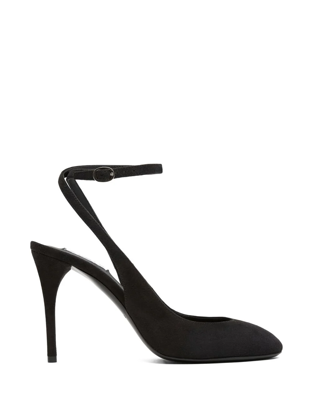 Decollete ankle-strap heeled pumps Highlights - Black - Ankle strap - Pointed toe - Buckle fastening Made in Italy Composition Outer: Calf Suede 100% Lining: Calf Leather 100% Sole: Calf Leather 100% SIZE & FIT Measurement HEEL 3.54 in(9 cm)