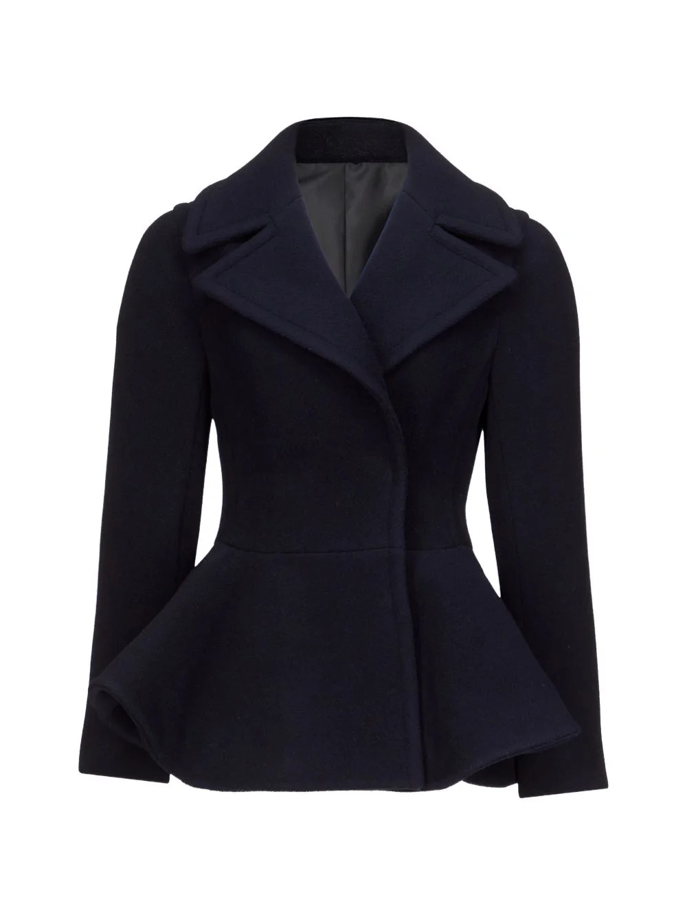 double-breasted peplum jacket Highlights - Midnight blue - Double-breasted button fastening - Wide notched lapels - Peplum hem - Long sleeves Imported Composition Outer: Virgin Wool 83%, Polyamide 17% Lining: Cupro 100% Washing instructions Read Manufacturer Guidelines