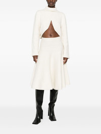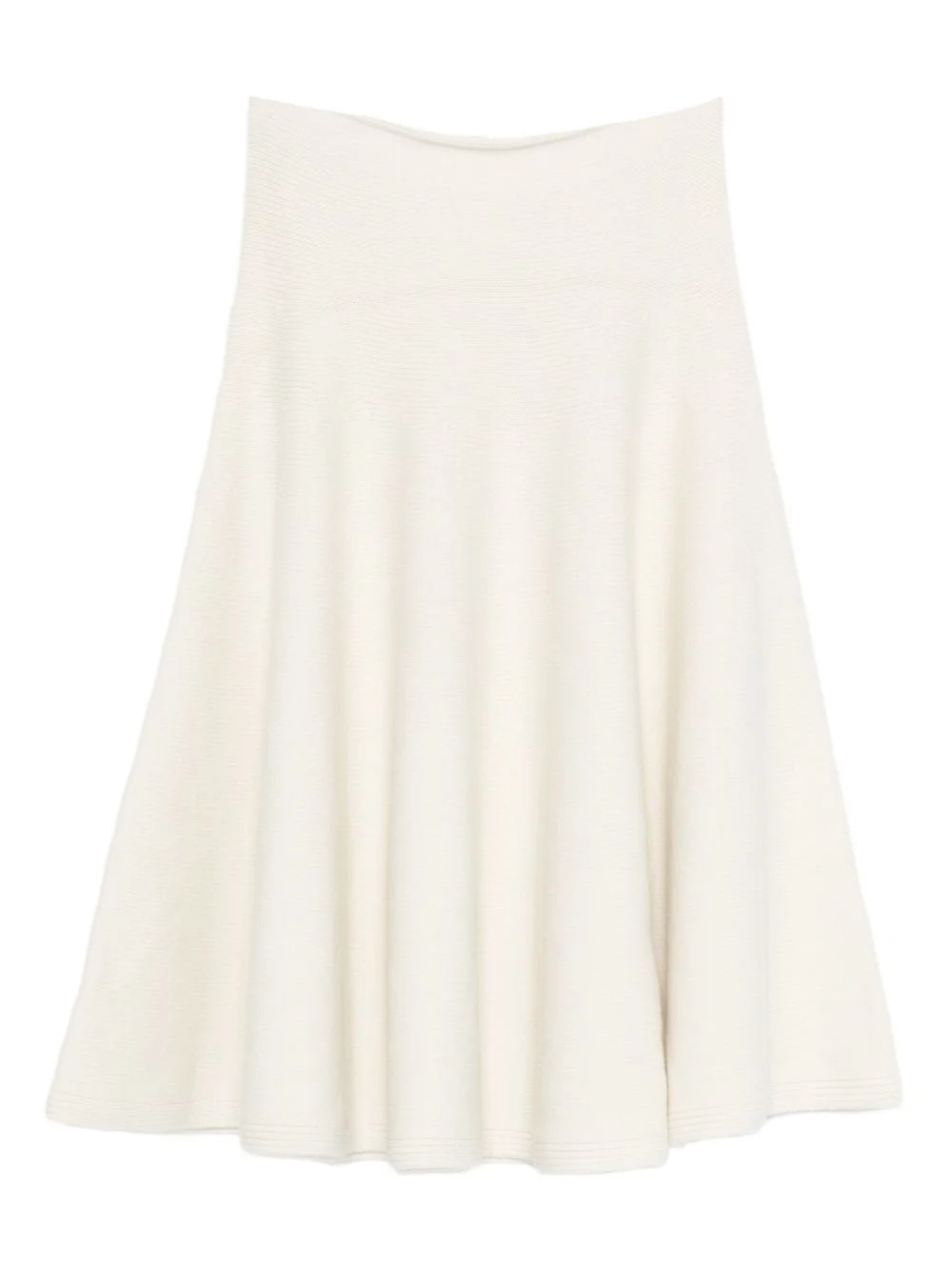 fine-knit A-line midi skirt Highlights - White - A-line - Ribbed trim - Fine knit Made in Italy Composition Cashmere 94%, Wool 3%, Polyamide 2%, Elastane 1% SIZE & FIT Model measurements Height 5 ft 10 in(1.77 m) Bust/Chest 32.28 in(82 cm) Hips 35.03 in(89 cm) Waist 25.19 in(64 cm) Washing instructions Read Manufacturer Guidelines