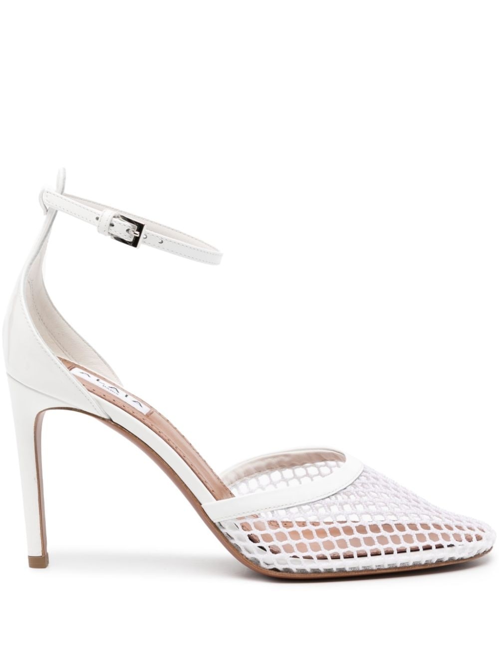 90mm fishnet-detailing pumps Highlights - White - Calf-length - Mesh detailing - Buckle-fastening ankle strap - Round toe - Branded leather insole - Leather sole Made in Italy Composition Outer: Calf Leather 100% Sole: Calf Leather 100% Lining: Lamb Skin 100% SIZE & FIT Measurement CIRCUMFERENCE 8.66 in(22 cm) HEEL 3.14 in(8 cm) HEIGHT 2.75 in(7 cm)