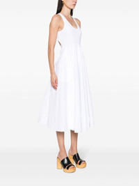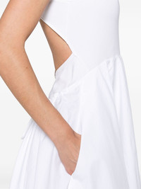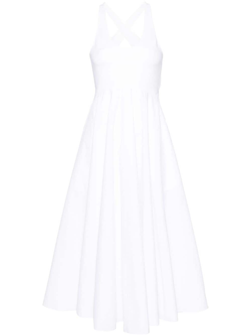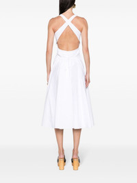 flared poplin midi dress Highlights - White - Cotton - Contrasting-fabric panels - Integrated japanese-poplin body - Poplin texture - Flared skirt - Scoop neck - Sleeveless - Rear criss-cross straps - Open back - Rear drawstring fastening - Snap-fit fastening - Two side inset pockets - Curved hem - Mid-length Made in Italy Composition Lining: Viscose 86%, Polyamide 10%, Elastane 4% Outer: Cotton 100% SIZE & FIT Model measurements Height 5 ft 10 in(1.78 m) Bust/Chest 33.46 in(85 cm) Hips 36.22 in(92 cm) Waist 23.22 in(59 cm) FittingInformation Designed for a close fit at the chest and waist with a loose fit at the hip The internal briefs provide a close and supportive fit Made from a midweight fabric This piece fits true to size – take your usual size Washing instructions Dry Clean Only