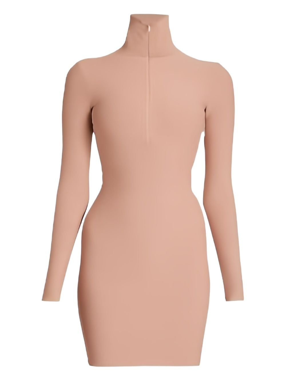 half-zip fastening mini dress light beige polo collar half front zip fastening long sleeves short length Made in Italy Composition Viscose 72%, Polyester 15%, Polyamide 12%, Polyurethane 1%