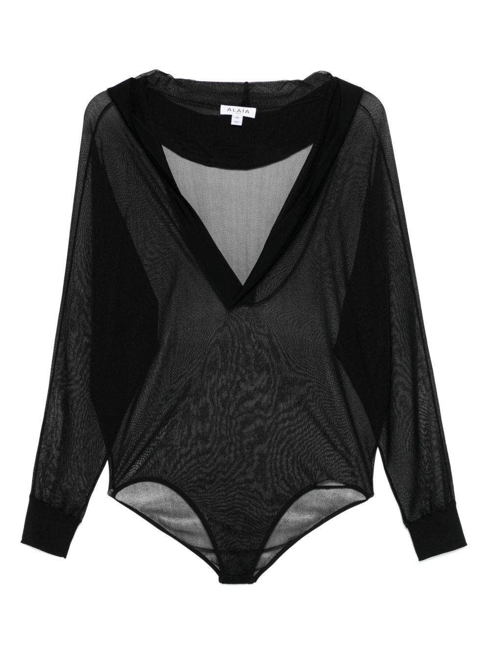 hooded bodysuit Highlights - Black - Press-stud fastening - V-neck - Long sleeves - Just a reminder that this piece must be tried on over your own garments. Made in Italy Composition Viscose 75%, Polyamide 24%, Spandex/Elastane 1% SIZE & FIT Model measurements Height 5 ft 10 in(1.77 m) Bust/Chest 33.07 in(84 cm) Hips 37 in(94 cm) Waist 24.8 in(63 cm) FittingInformation Designed to be unstructured, offering a loose fit throughout Made from a midweight stretch fabric, this piece offers elasticity and flexibility when worn