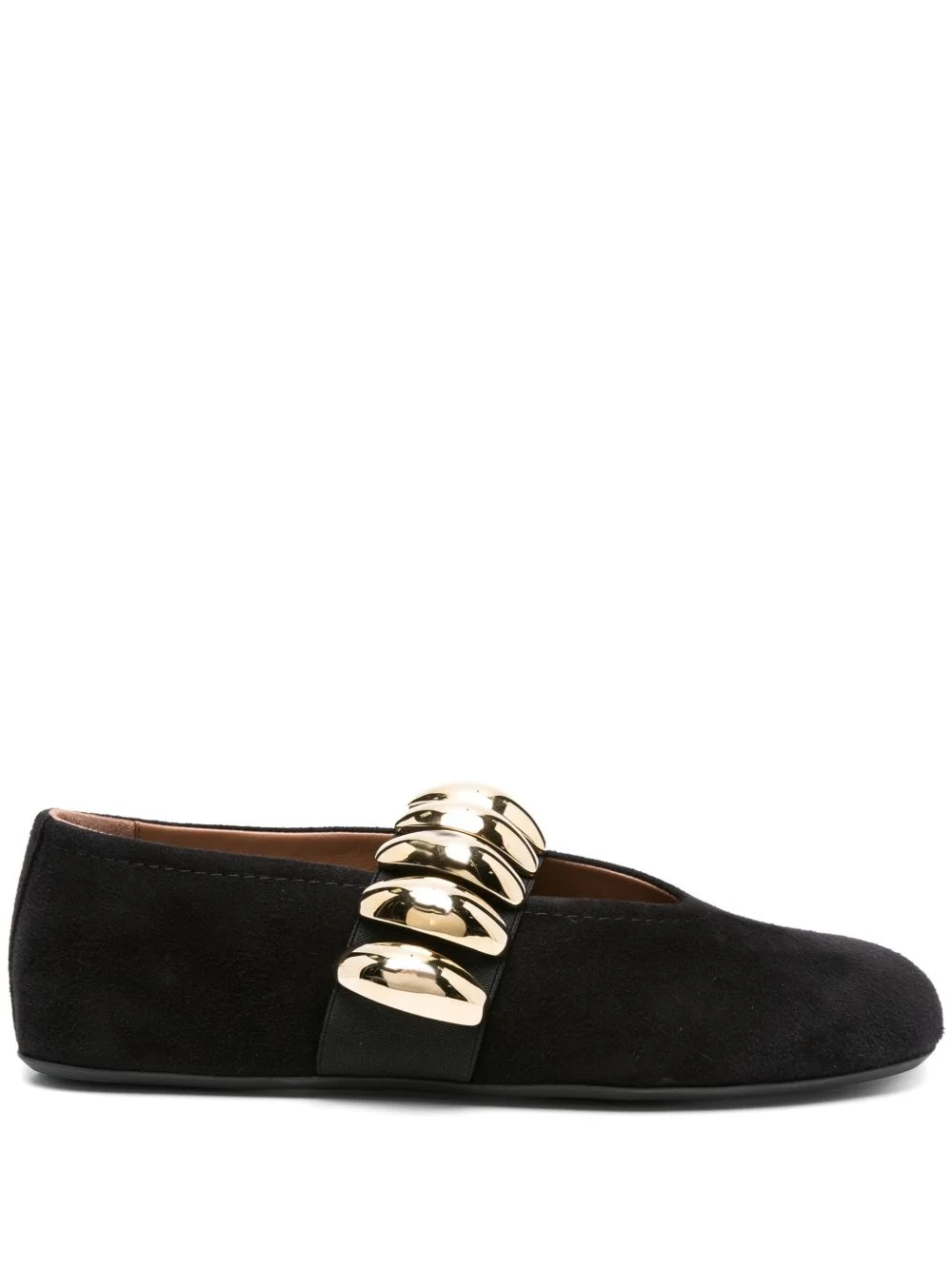 Jewel ballet flats Highlights - Black - Rubber sole - Embossed detail - Round toe Made in Italy Composition Lining: Calf Leather 100% Sole: Rubber 100% Outer: Fabric 100%, Calf Suede 100%