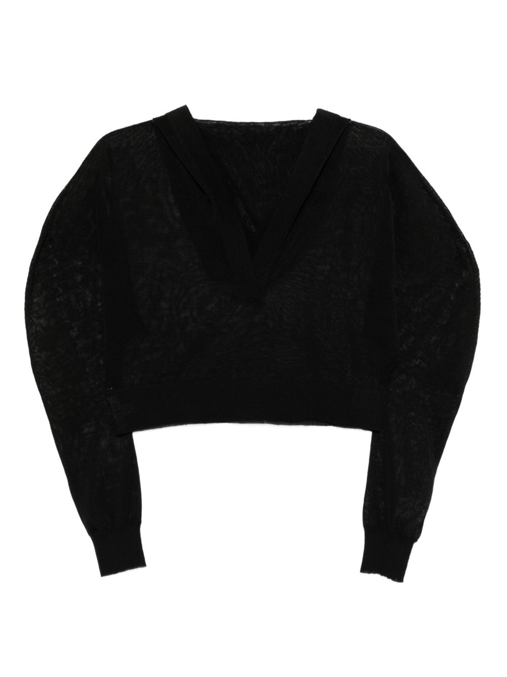 knitted cropped hoodie Highlights - Black - V-neck - Drop shoulder - Long sleeves - Ribbed cuffs and hem Made in Italy Composition Linen/Flax 90%, Silk 10% Washing instructions Dry Clean Only