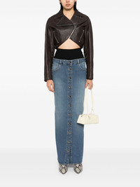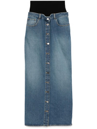 knitted waistband denim skirt Highlights - Vintage blue - Front button fastening - Classic five pockets Made in Italy Composition Cotton 99%, Polyurethane 1% SIZE & FIT Model measurements Height 5 ft 10 in(1.77 m) Bust/Chest 31.49 in(80 cm) Hips 35.43 in(90 cm) Waist 25.19 in(64 cm) Measurement HIPS 37 in(94 cm) LENGTH 44.88 in(114 cm) WAIST 23.62 in(60 cm) FittingInformation This maxi-length skirt is intended to be worn high on the waist The taller waistband offers added support and structure Constructed from stretch denim, this piece offers a stretch fit with durability This piece fits small – take one size up Washing instructions Machine Wash