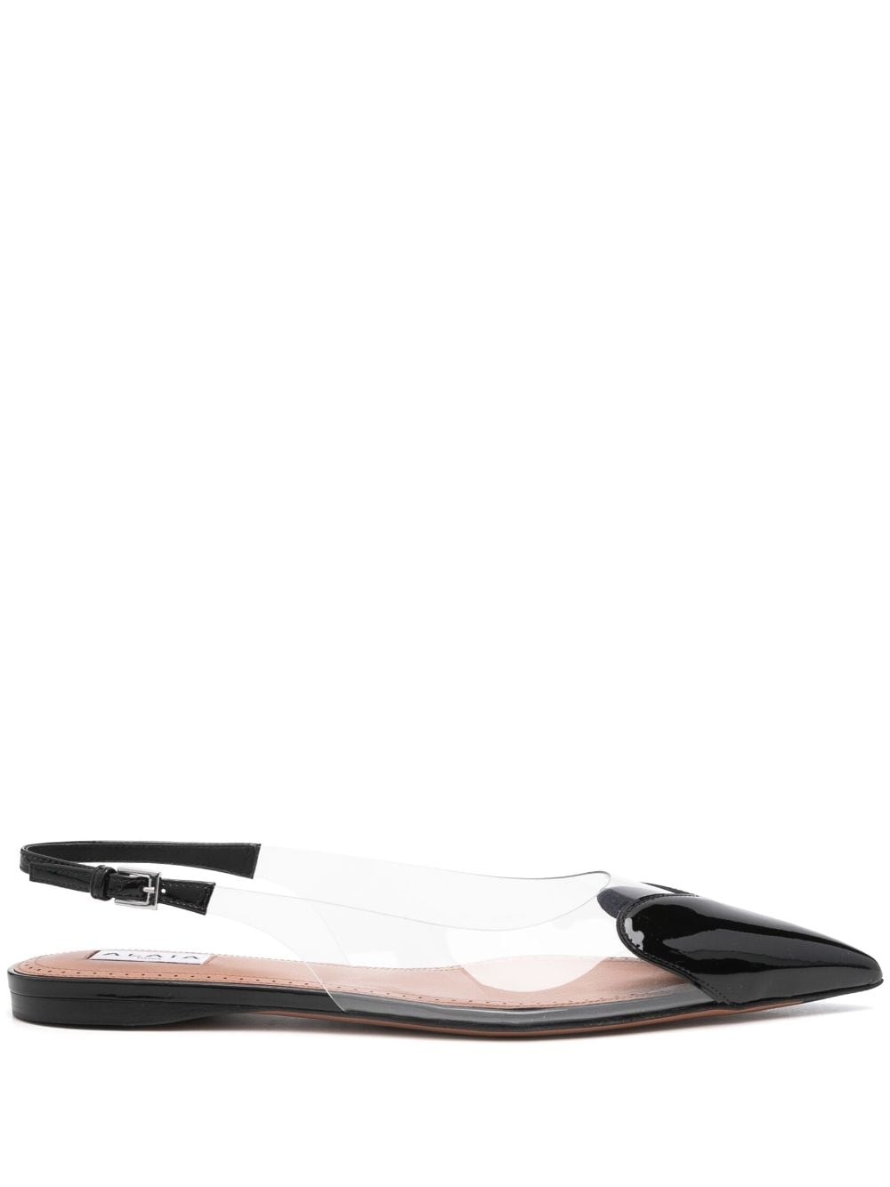 Le Coeur slingbacks ballerina shoes Highlights - Black - Calf leather - Smooth grain - Pointed toe - Contrasting toecap - Branded insole - Flat rubber sole - Buckle-fastening slingback strap Made in Italy Composition Sole: Calf Leather 95%, Recycled Rubber 5% Outer: Polyurethane 100%, Rubber 100%, Patent Calf Leather 100% Lining: Calf Leather 100% SIZE & FIT Measurement HEEL 0.59 in(1.5 cm)