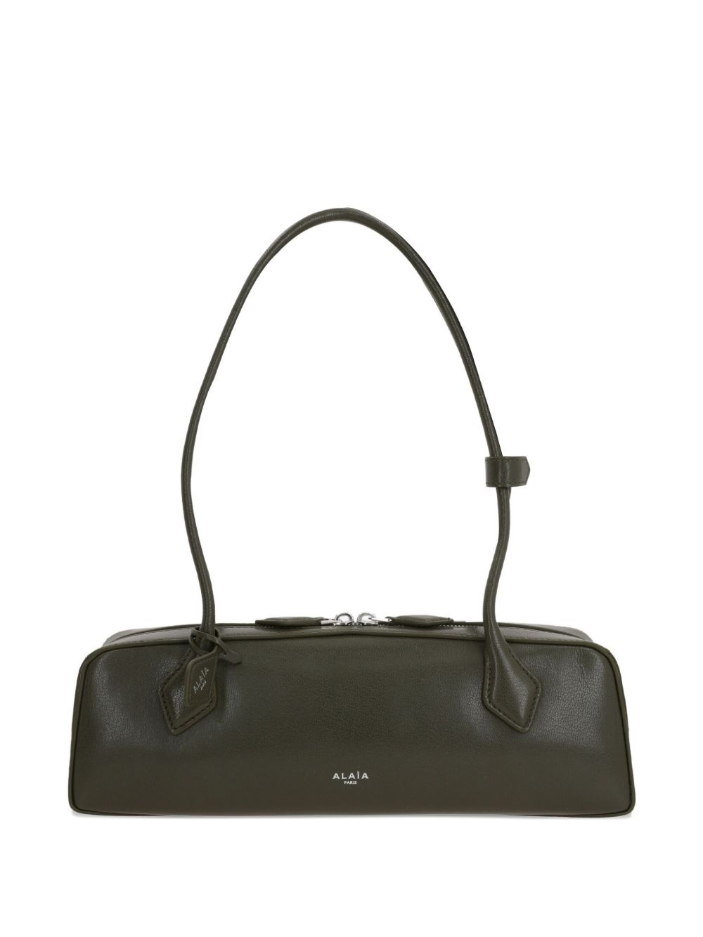 Le Teckel double-handle zip-fastening tote bag Highlights - Olive green - Leather - Double slider zip fastening - Double handle - Logo print - Rectangular shape Made in Italy Composition Outer: Calf Leather 100% SIZE & FIT Measurement DEPTH 3.93 in(10 cm) HEIGHT 4.13 in(10.5 cm) WIDTH 10.23 in(26 cm)