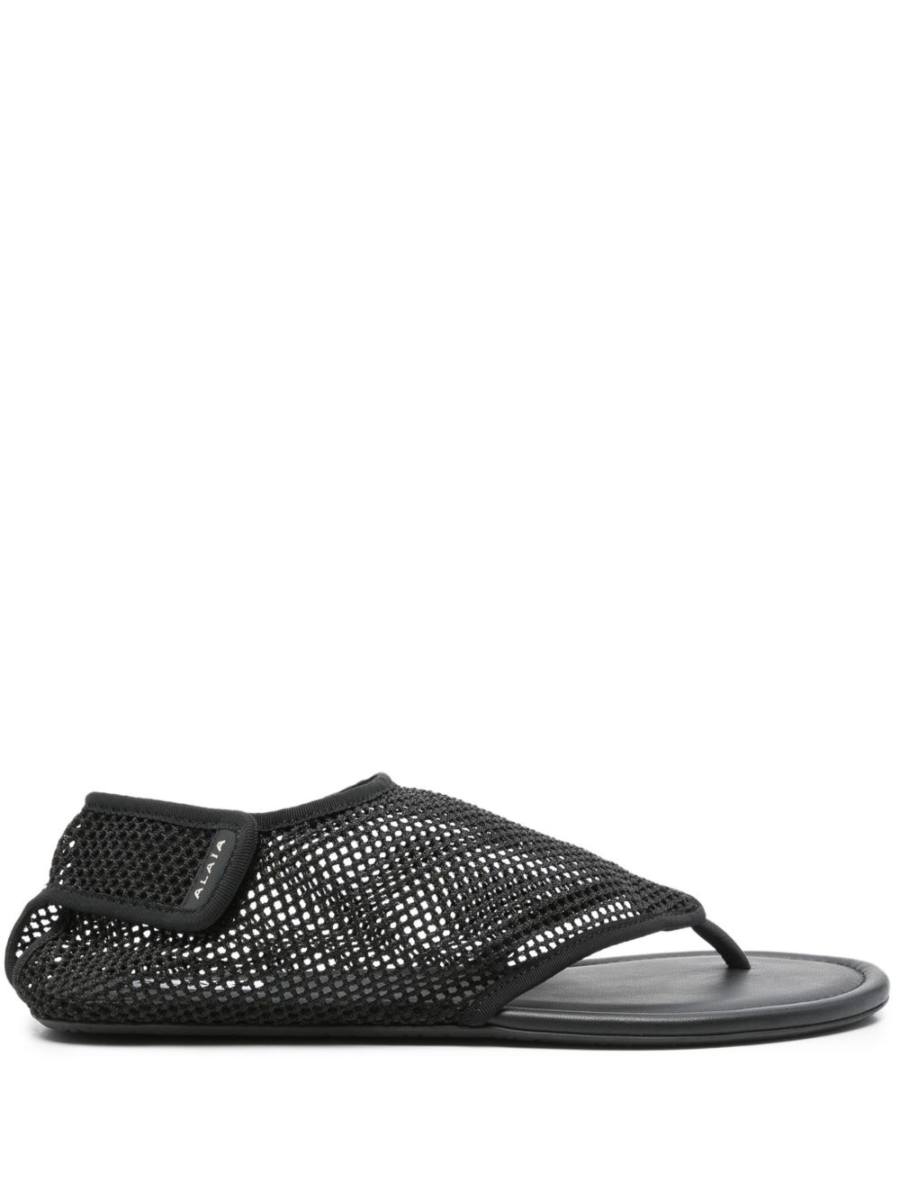 leather flat sandals Highlights - Black - Mesh detail - Hook and loop fastening - Open round toe - Rubber sole - Branded insole Made in Italy Composition Sole: Rubber 100% Outer: Fabric 100%, Calf Leather 100% Lining: Calf Leather 100%