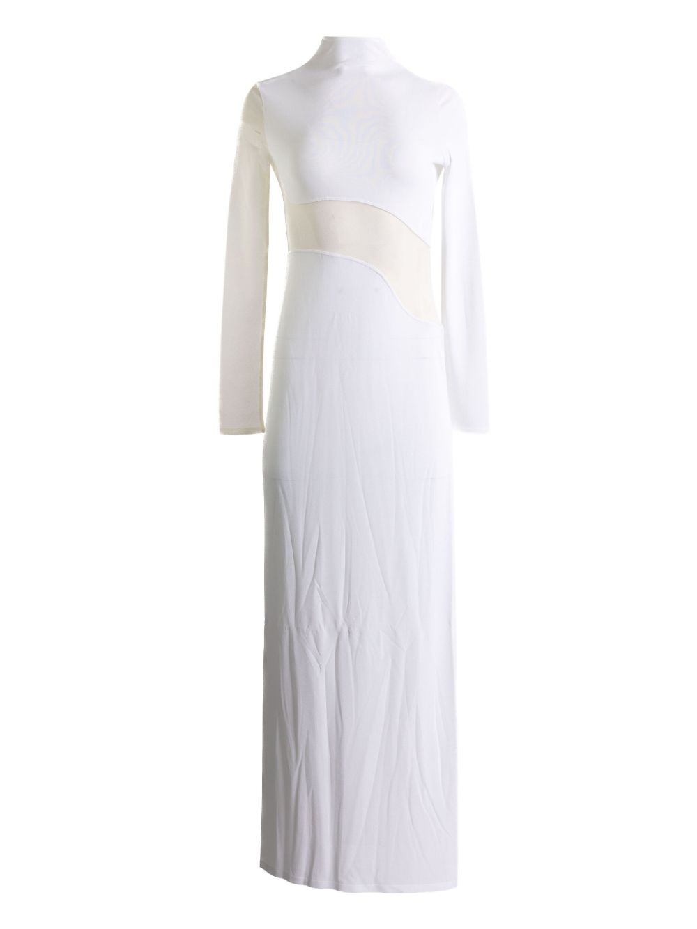 long-sleeve panelled maxi dress Highlights - White - Panelled - Long sleeves - High neck - Maxi length - Sheer panels Made in Italy Composition Viscose 94%, Polyester 6% Washing instructions Read Manufacturer Guidelines
