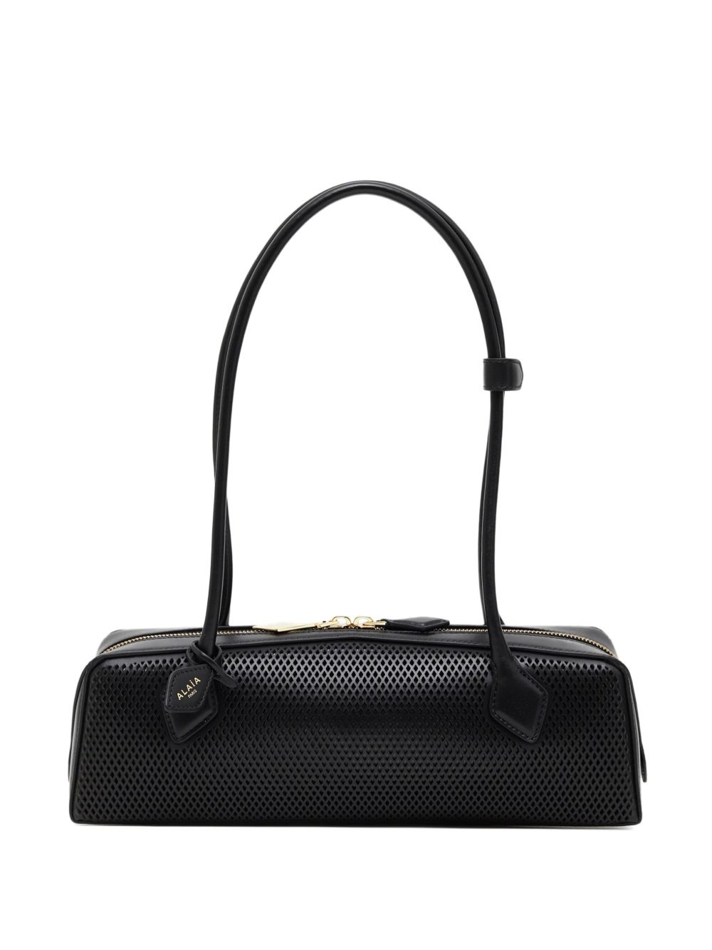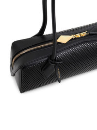 medium Le Teckel shoulder bag Highlights - Black - Top zip fastening - Two rolled top handles - Perforated design - Main compartment Made in Italy Composition Outer: Calf Leather 100% SIZE & FIT Measurement DEPTH 3.93 in(10 cm) HEIGHT 4.72 in(12 cm) WIDTH 12.59 in(32 cm)
