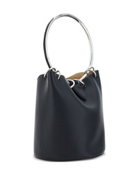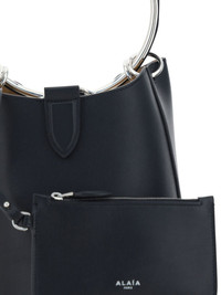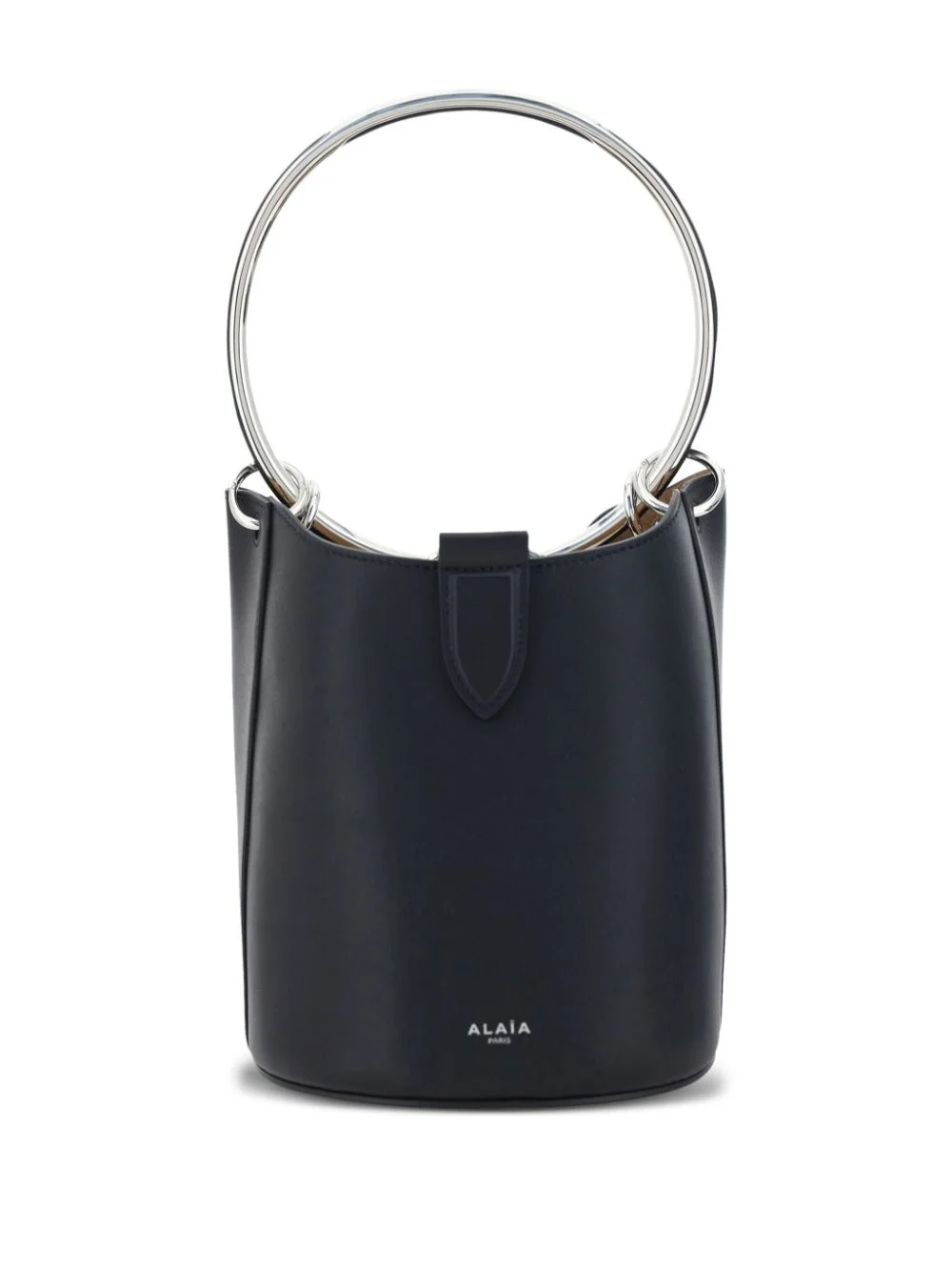 medium Ring leather bucket bag Highlights - Black - Calf leather - Smooth grain - Bucket body - Ring hardware detailing - Concealed magnetic fastening - Single metallic top handle - Main compartment - Silver-tone hardware - Removable pouch - Suede lining - This piece comes complete with a protective dust bag. Made in Italy Composition Outer: Calf Leather 100% SIZE & FIT Measurement DEPTH 7.08 in(18 cm) HEIGHT 7.87 in(20 cm) WIDTH 7.87 in(20 cm) HANDLE 5.9 in(15 cm)