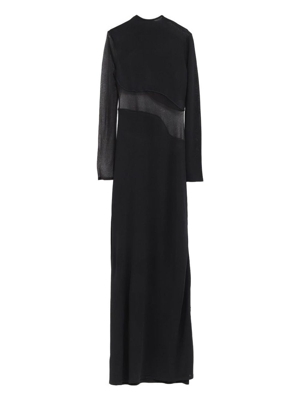 mesh-panel maxi dress Highlights - Black - Long sleeves - Crew neck - Curved mesh panel - Maxi length Made in Italy Composition Viscose 94%, Polyester 6% Washing instructions Read Manufacturer Guidelines
