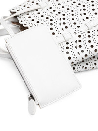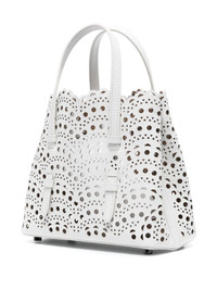 Mina 20 tote bag Highlights - Optical white - Calf leather - Smooth grain - Tonal stitching - Signature vienne laser-cut motif - Debossed internal logo - Side press-stud fastening - Two flat top handles - Adjustable detachable shoulder strap - Detachable coin purse - Main compartment - Logo-engraved metal feet - No lining - This piece comes complete with a protective dust bag. Made in Italy Composition Outer: CALFSKIN 100% SIZE & FIT Model measurements Height 5 ft 11 in(1.8 m) Bust/Chest 33.07 in(84 cm) Hips 37.4 in(95 cm) Waist 25.19 in(64 cm) Measurement DEPTH 3.93 in(10 cm) HEIGHT 6.69 in(17 cm) WIDTH 7.87 in(20 cm)