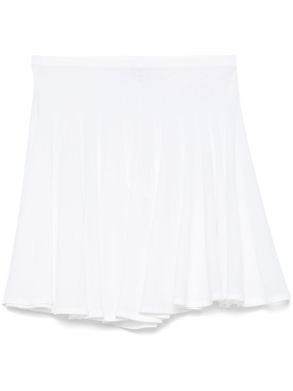 mini skater skirt Highlights - White - Elasticated waistband - A-line - Semi-sheer construction Made in Italy Composition Viscose 76%, Polyamide 24% SIZE & FIT Model measurements Height 5 ft 11 in(1.8 m) Bust/Chest 33.07 in(84 cm) Hips 37.4 in(95 cm) Waist 25.19 in(64 cm) FittingInformation This mini-length skirt is intended to be worn low on the hips The elasticated waist allows for a comfortable fit Made from a lightweight non-stretch fabric