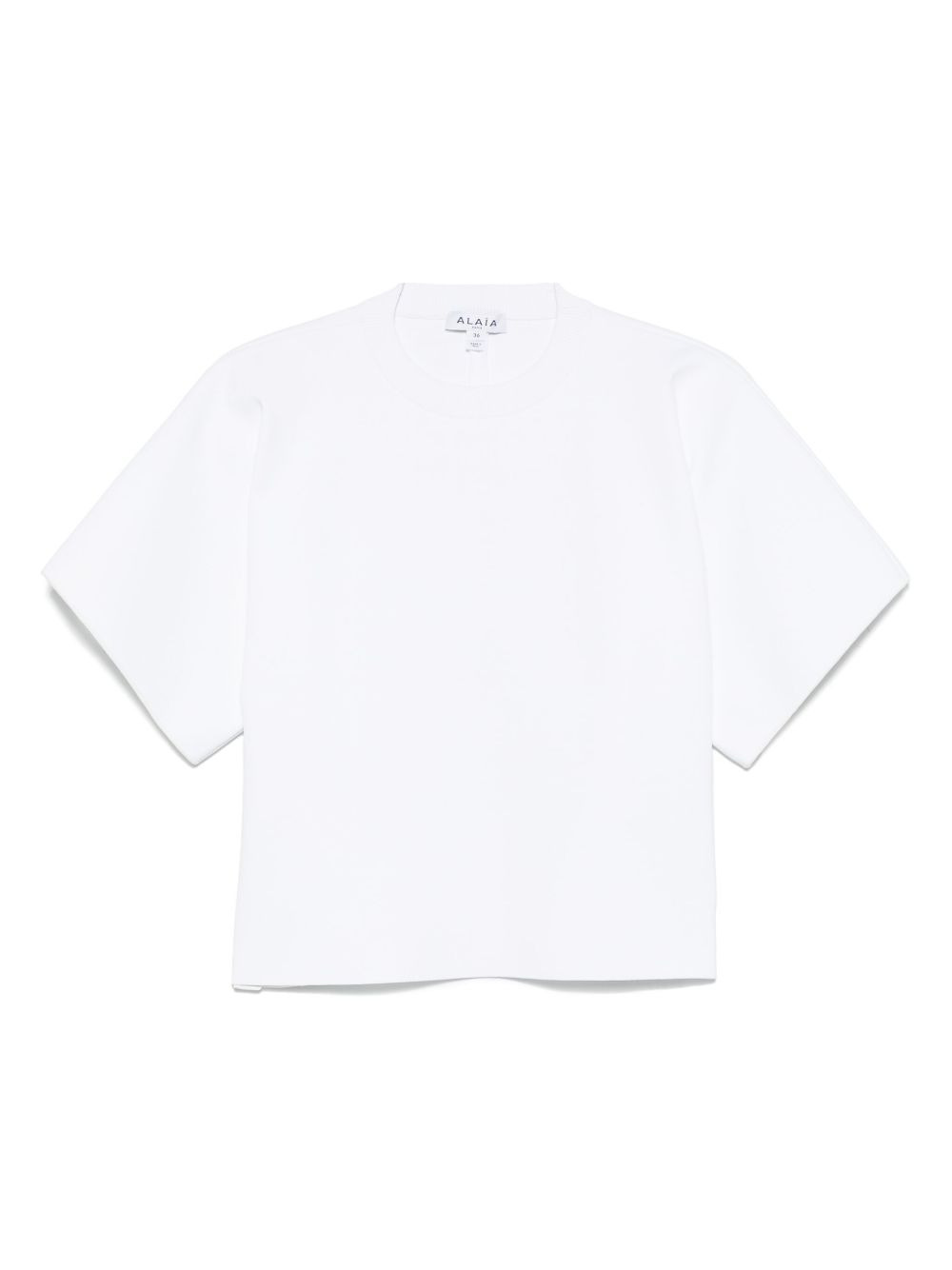 open-back T-shirt Highlights - White - Crew neck - Short sleeves - Open back - Straight hem Made in Italy Composition Viscose 77%, Polyamide 16%, Polyester 5%, Elastane 2% Washing instructions Dry Clean Only